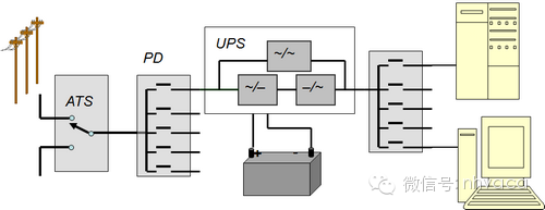 一個(gè)完備的UPS供電系統(tǒng),是由前端配電(市電,發(fā)電機(jī),配電柜),UPS主機(jī)、電池、后端配電組成,附加后臺(tái)監(jiān)控或網(wǎng)絡(luò)監(jiān)控軟/硬件等單元。
